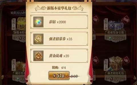 最后一招了,游戏内有大量昂贵的游戏礼包,里面也有提供强者招募券的。一般玩家不建议购买,因为抽卡本身的风险太大,很可能投入无回报。
