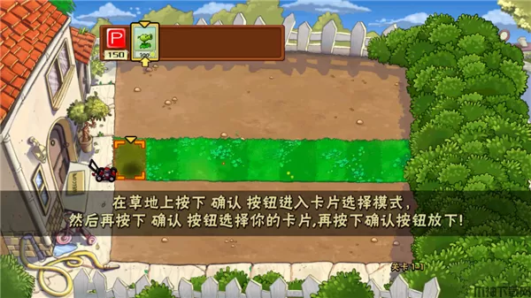 3、在合理刚开始是没有多少卡片的,需要通过关卡才能够获得其他的卡片,操作也是非常的简单,玩家只需要再草地上按下“确定”按钮进入卡片选择模式。然后再按下“确定”按钮选择你的卡片,再按下“确定”按钮就可以放下了,不要看着很麻烦,但是操作起来还是非常的简单。