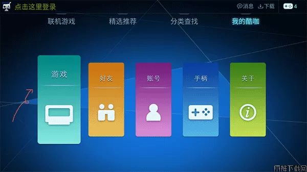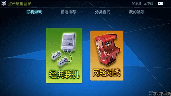 1、进入酷咖游戏tv版后,在联机游戏界面点击“经典联机”