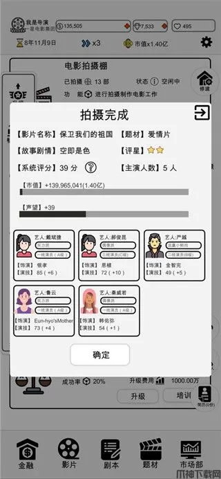 3、票房收入很重要,您可以获得各种奖励,可以用自己的能力征服所有评委。