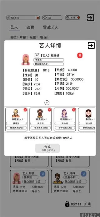 前期的建设工作准备就绪后,接下来便要选拔艺人,不过初期系统已经帮你默认推荐了艺人,所以接下来只需开始拍摄即可。