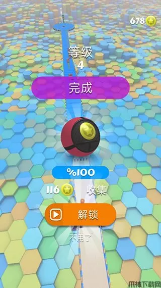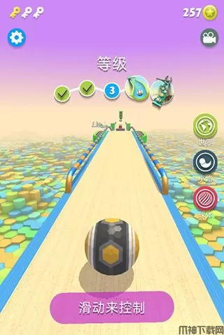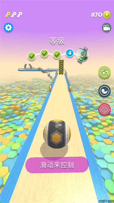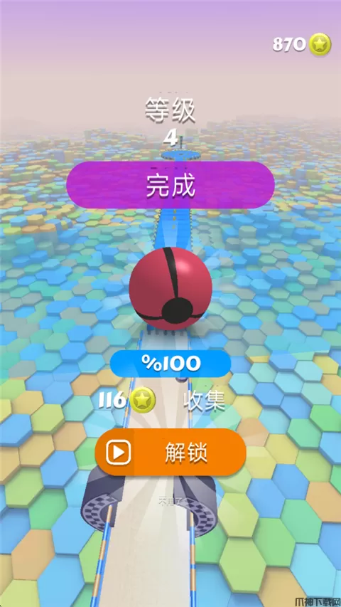 玩家控制球体到达终点即可通过关卡,并且获得金币奖励。