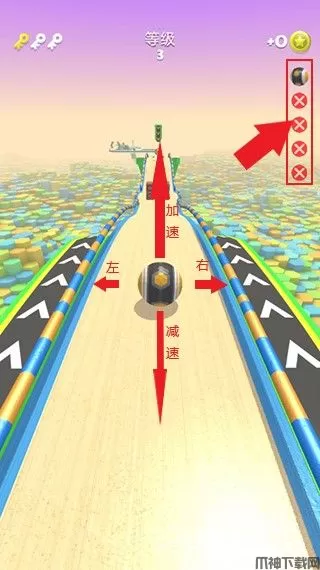 2、道路上有许多机关,玩家要控制小球躲避那些机关,操控起来很简单。
