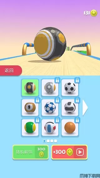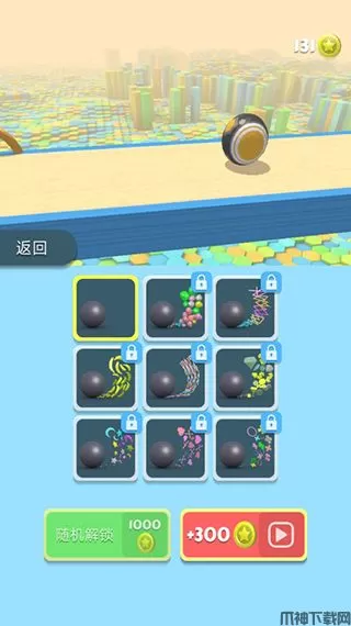 玩家点击小路,即可进入球体拖尾页面,可以使用金币解锁球球拖尾,在玩耍游戏的时候滑动球体会出现非常好看的拖尾。
