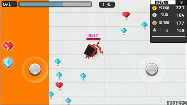 3、对局内会随机刷新道具,拾取“爱心”可以使角色生命值回满,“护盾”道具则可以抵挡敌方的3次攻击;
