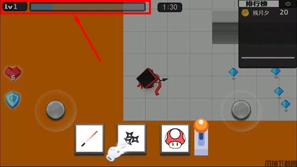 4、上方的经验条满时,即可升一级,然后会随机刷新出三个技能,玩家可以根据自身需求选择其中一个;