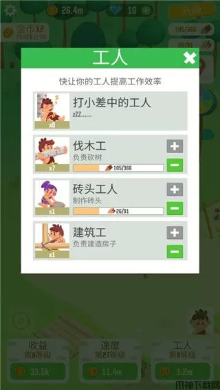 2、点击工人,还可自由招募不同的工人来提高工资效率