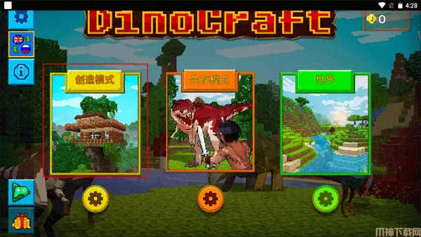 1、下载进入方舟方块世界手机版,你会看到创造模式、生存模式以及世界三种玩法,每一种玩法都乐趣十足;