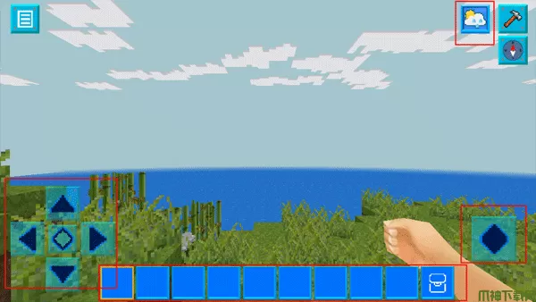 2、这里我们选择创造模式,游戏中的左右两边按钮显示的是移动方向键和跳跃键;