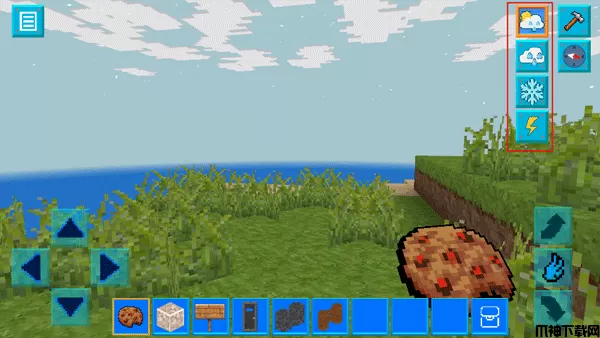 3、当我们点击右上方的天气图标时,可以调整这个世界的气象,如闪电、雪花、下雨等,给你一种逼近于现实的体验;