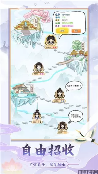 2、想要发展壮大,招兵买马是第一步,提升你的门派知名度。