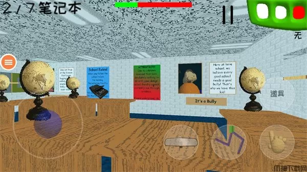 恐怖学校3中文版是一款非常有趣的逃脱解谜游戏,同时也是该系列的第三部作品,相比前作而言,该游戏在原版的基础上做了一些更深入更拓展的玩法,并且除了原来的角色外还加入了更多新角色,场面一度陷入混乱,气氛也异常诡异。当然玩法还是那个玩法,在恐怖学校3游戏中你的朋友将他的7本笔记本落在了学校,于是你要回学校帮他找到这7本笔记本,在这个过程中也并不是那么简单的,玩家要答对老师提出的各种问题,就是那个成天穿绿色衣服头上只有一根毛的老师!