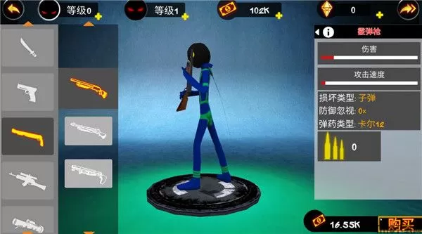1、游戏中的战斗方式主要以射击的方式为主,玩家将操作火柴人进行紧密的射击的战斗