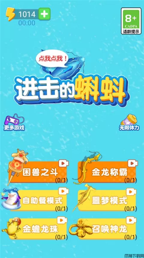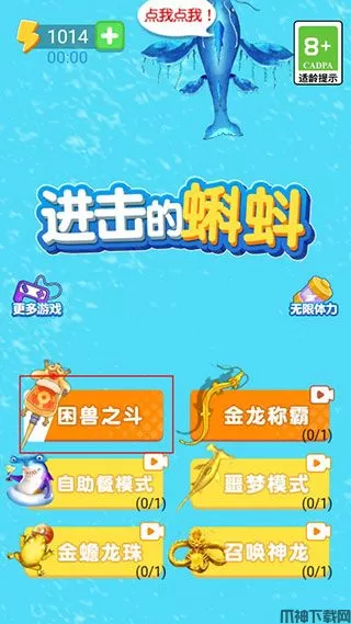 进击的蝌蚪是一款好玩的一款游戏合集,在这里玩家们能够找到合成蝌蚪、召唤神龙、金蟾龙珠等等小游戏进行,每一个游戏都是简单又休闲,可以让玩家们在休闲的时候玩上一会,打发无聊的时间,只需要花上2、3分钟时间,就能够享受一下游戏的乐趣。