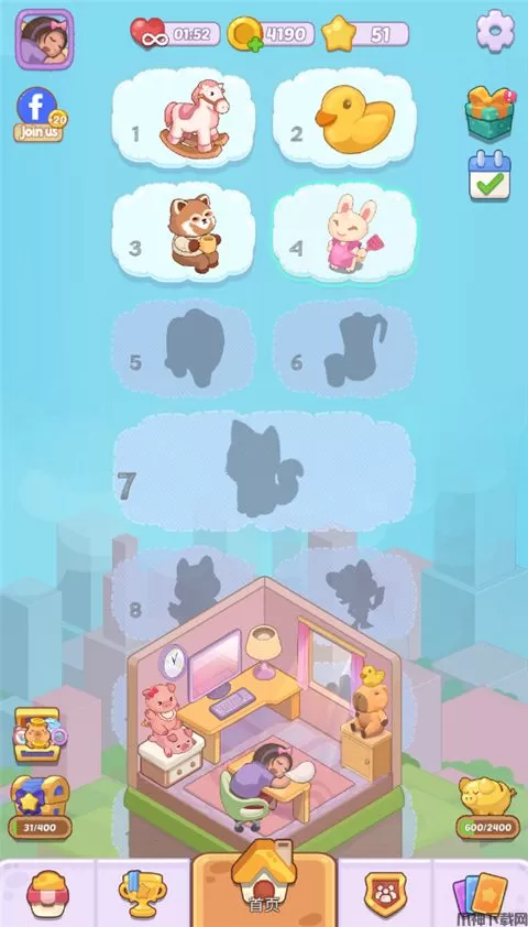 1、进入梦幻房间Dreamy Room游戏,选择关卡。