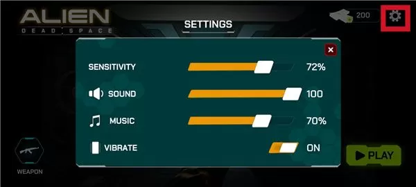4、选择右上角的设置,这里是关于游戏的声音、振动开关;