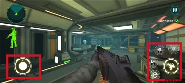 7、进入游戏界面以后,左侧摇杆是操控移动的,右侧是射击手雷等;