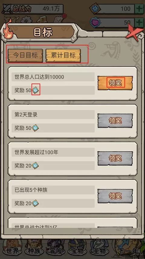 5、游戏内还有今日和累计目标任务,完成任务可以获得大量星力。