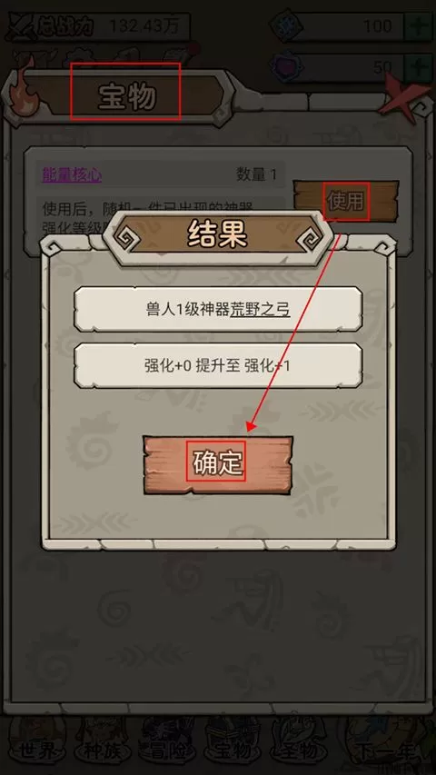 7、玩家获取到宝物后,可以进行使用,可以随机给一个种族提供神器装备。
