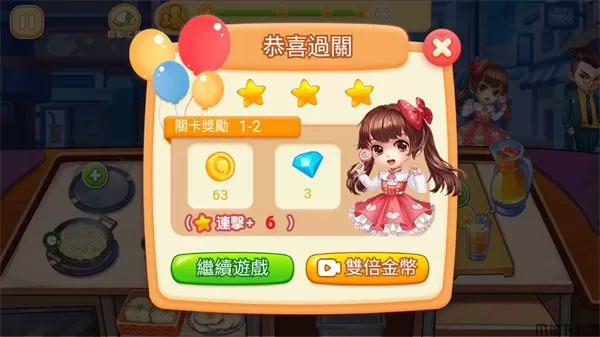 8、当玩家将所有的顾客的订单都完成了即可通关,通关后还会获得丰富的奖励;