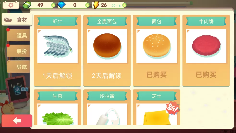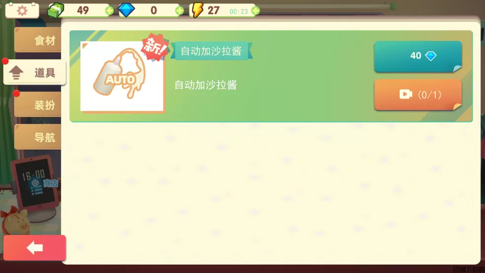 花费相应数量的钻石购买道具,在制作美食时可以提高效率。