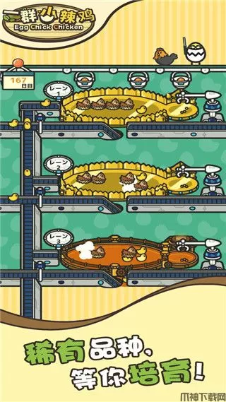 一群小辣鸡手游中化身为可爱的小鸡仔的农场主,带你走进养鸡工厂亲身体验母鸡下蛋、,每三分钟就是游戏内的一天,随时随地掏出手机就可以与小鸡共度欢乐的休闲时光。