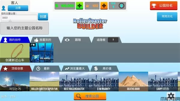 4、创建玩自己的过山车我们还可以看看别人的顶级创意,在下面点击一个即可;
