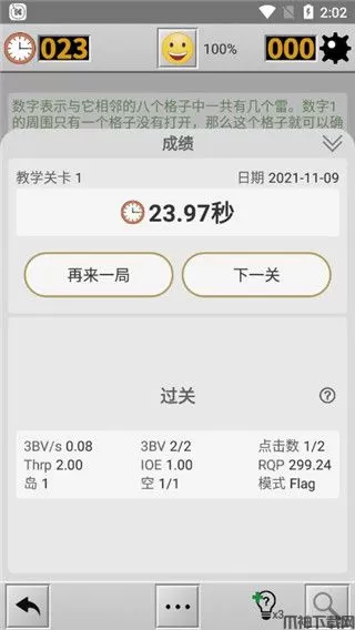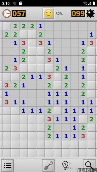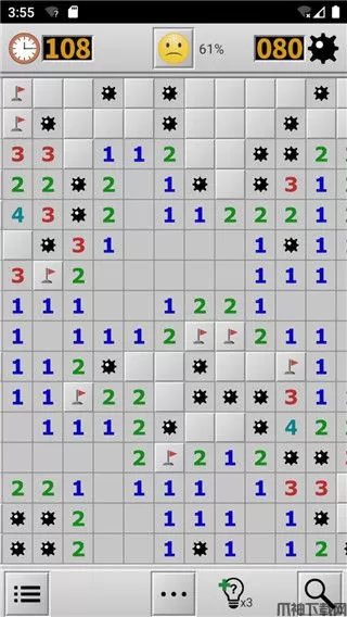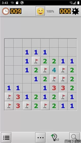9、如果一个已打开格子周围所有的雷已经正确标出,则可以在此格上同时点击屏幕以打开其周围剩余的无雷格。