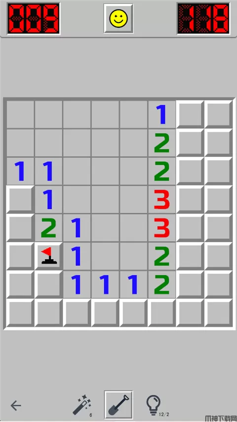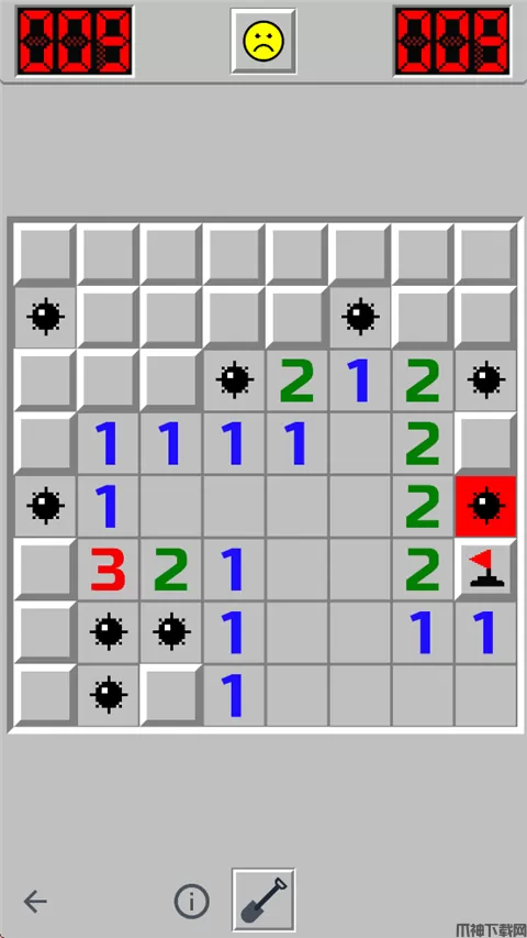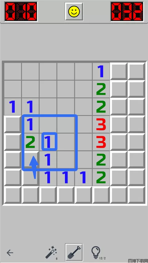 9、如果一个已打开格子周围所有的雷已经正确标出,则可以在此格上同时点击屏幕以打开其周围剩余的无雷格。