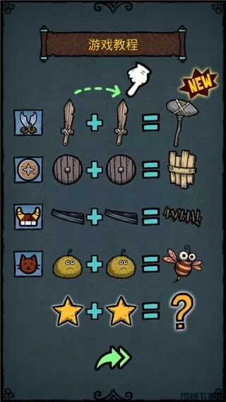 1、点击图片中的图标获得武器,游戏以合成为核心