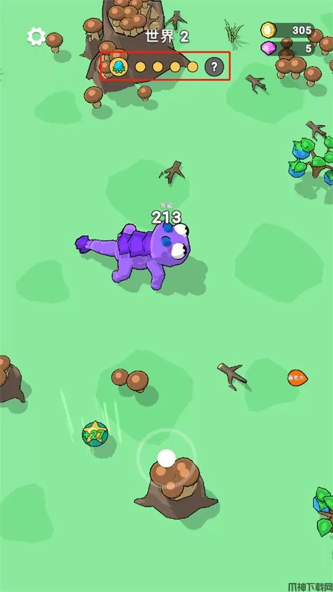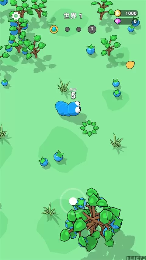 贪吃鬼进化游戏刚开局是一颗蛋,破壳后就会变成一只毛毛虫,你需要通过不停的吃地上的果子来强大自己,其中的果子树和宝箱也不能错过,你攻击果子树后会掉落大量的果子,吞噬果子你会得到快速的成长,而攻击宝箱你会得到一些钻石和道具,道具包含了范围攻击、增加攻击力、快速吸收附近的果子等等。当你的等级高过其他毛毛虫的等级,你还可以去吞噬其他的毛毛虫,吞噬了其他的毛毛虫还会进行进化,长出四条腿来。