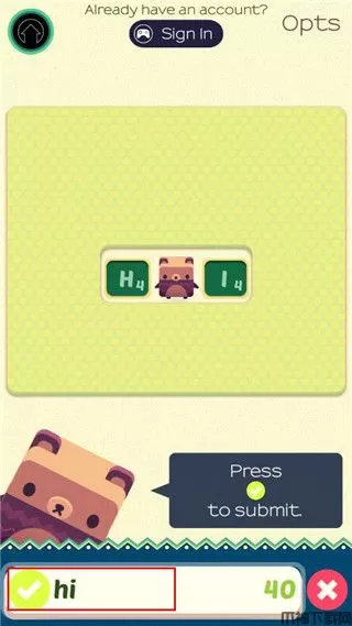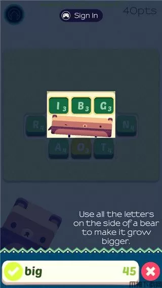 3、当用相邻的字母时,熊会出现,更多的字母会让熊变得更大,也会让你的分数持续增长