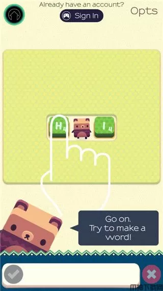1、下载并安装游戏后打开进入,首先我们来试着做一个单词吧,根据手势点击