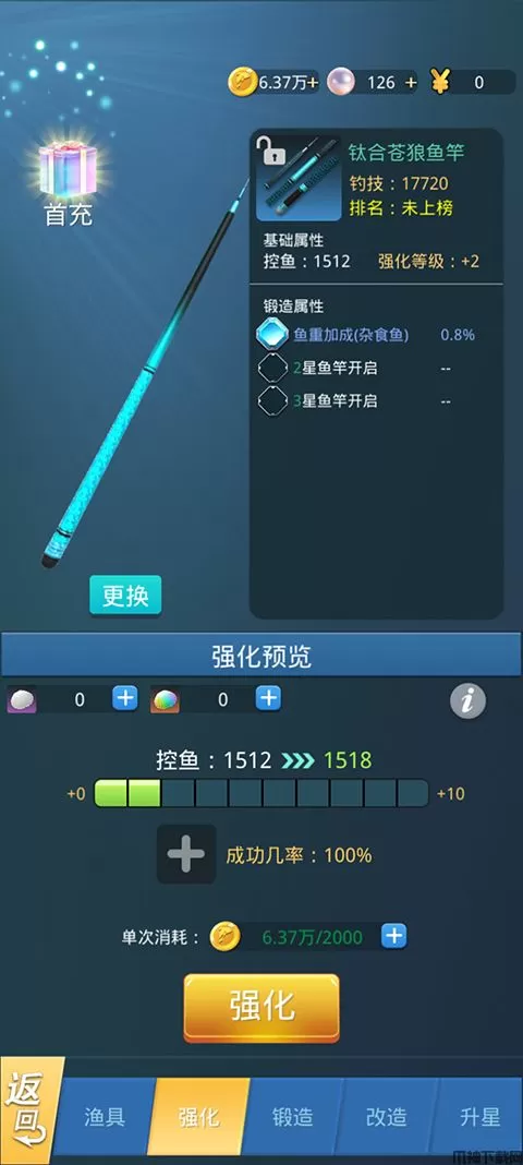 6、还可以对鱼竿进行提升强化,增加鱼竿伤害,更好的进行捕捉。