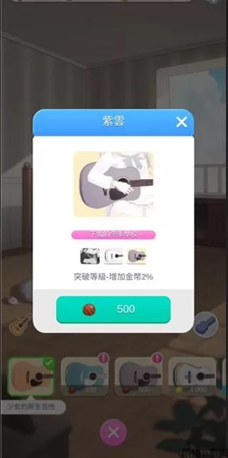4、在布置、吉他中,我们可以为其房间布置,购买其他的吉他;