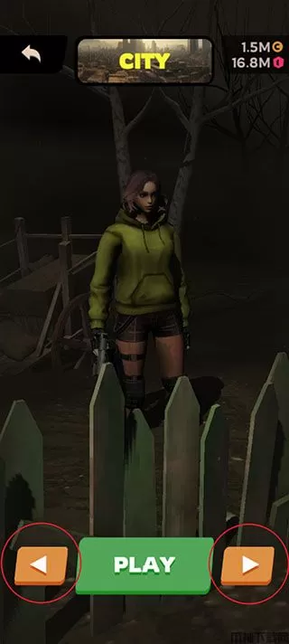 玩家点击首页store即可进入商店,可以切换人物以及衣服,也可以购买武器。