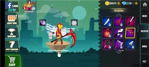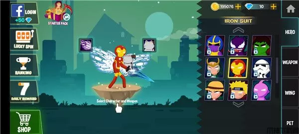 2、选择你的火柴人角色,钢铁侠、鸣人、路飞等等应有尽有;