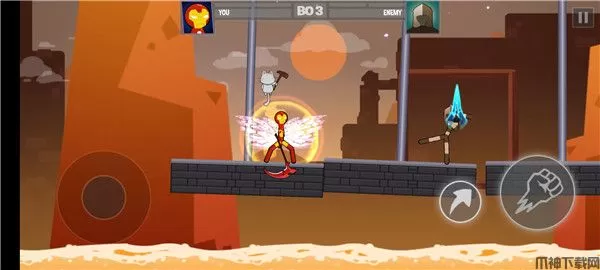 5、触摸屏幕摇杆来控制角色的灵活操作,与其他火柴人对手进行精彩的较量对决;