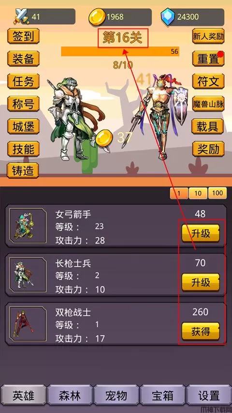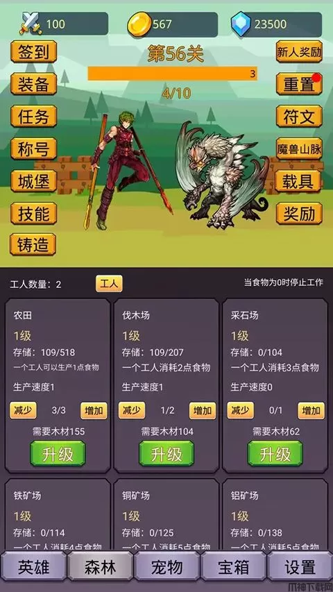 宠物升上去了之后,基本不会卡关,每天主要任务就是推关,升农田,搞城堡等级,升技能,在不会卡关的情况下,每天重置1关就可以,卡关了之后,重置就可以拉满。