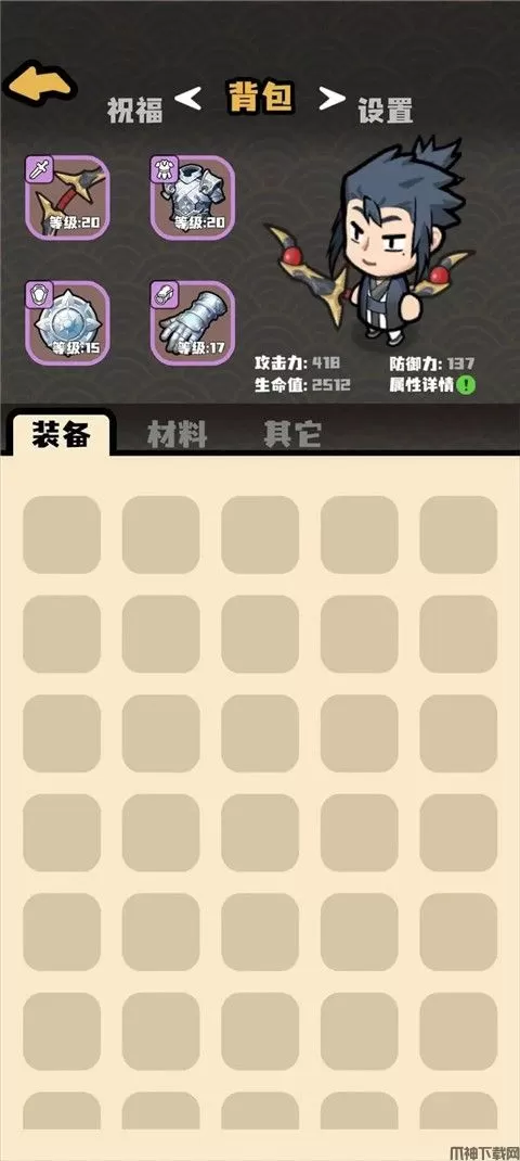 2、人物昵称下面的等级,要打boss后,开箱子,才增加其右边的进度条,给人物升级。箱子掉金币,和打造装备用的锻造石。开1个箱子要20点体力,5分钟回复1点。