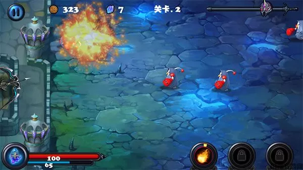3、双boss和远程boss:达到60关左右基本就会出现双boss,远程boss等,这时箭的暴击尽量升到4级,致命一击3级,多重弓至少两支箭,推荐宝石优先用来升级魔法等,其次才使用补充魔法值。