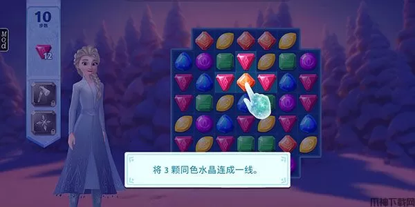 1、进入关卡后,我们只需要将3颗同色水晶连成一线即可完成消除。