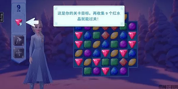 2、左侧这里显示的是你的关卡目标,再收集9个红水晶就能过关。