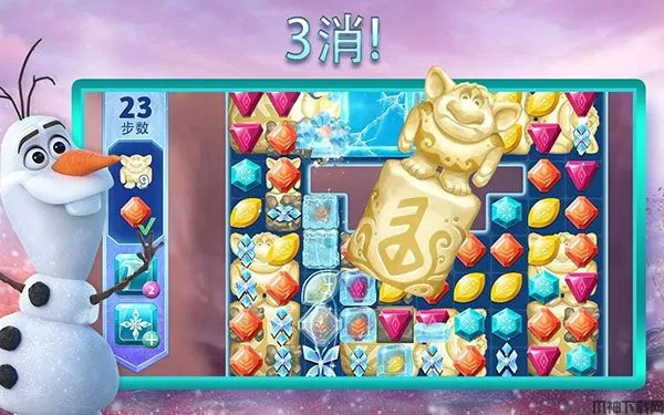 冰雪奇缘大冒险最新版是一款全新的休闲三消游戏,该游戏是以同名系列电影为蓝本而打造的,玩家在游戏中将通过消消乐游戏来获得各种道具和装饰物,然后你就可以用这些道具去装饰你的城堡并在游戏中的时间进行探索。