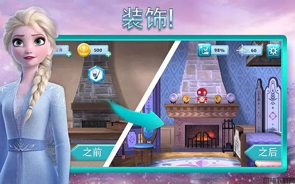 冰雪奇缘大冒险最新版是一款全新的休闲三消游戏,该游戏是以同名系列电影为蓝本而打造的,玩家在游戏中将通过消消乐游戏来获得各种道具和装饰物,然后你就可以用这些道具去装饰你的城堡并在游戏中的时间进行探索。你也可以让你最喜爱的电影角色助你通过成百上千个趣味三消游戏关卡。或者用你的设计理念来装饰城堡入口、大厅,以及阿伦黛尔王国的众多建筑!