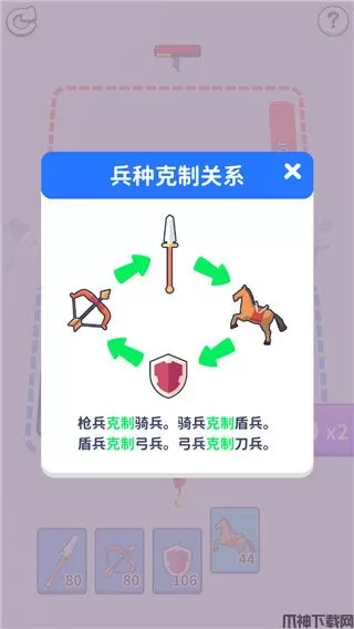 6、熟悉兵种克制关系后,可搭配多种类士兵获胜