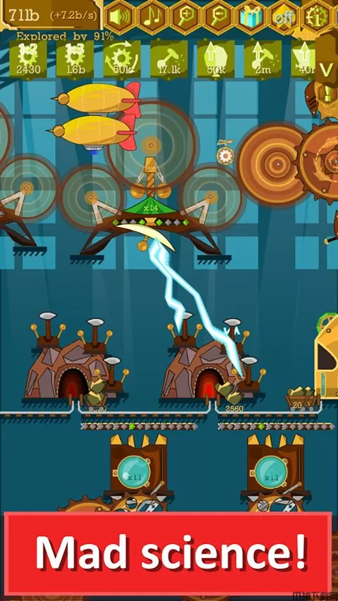 蒸汽朋克机器厂是一款非常有趣的游戏,一开始作为玩家的你将在工厂车间里拥有一台巧妙的反应堆机器,当你旋转齿轮时,它会产生硬币,但这是闲置装配线的开始,玩家需要赚钱来升级反应堆,并且为货币工厂购买更多的齿轮和齿轮,例如发动机、泵、锤子或货车。