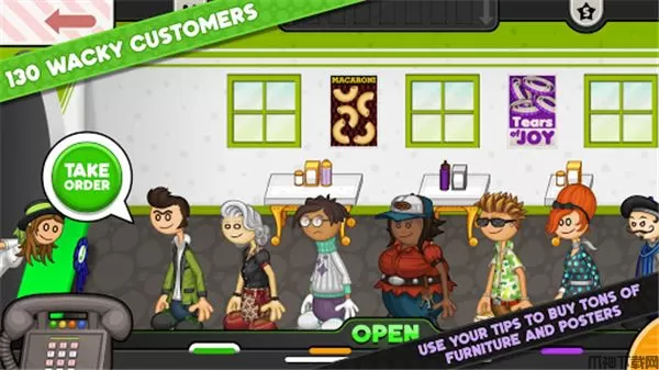 老爹意大利面店togo不仅可以线下获取订单,顾客还将通过电话下订单,你需要派遣一名司机来帮助接受订单并将其送到他们家,在订单中添加各种贴纸赠送顾客,有了足够的收益可以升级搭配设备、装饰品以及主题家居!