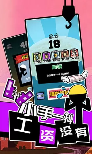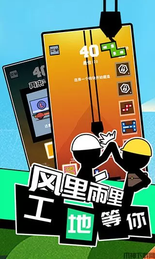我搬砖贼六游戏的画风简单,整个画面干净简洁,不过在游戏性的设计上比较别出心裁,新鲜感非常高。游戏中搬的“砖”是各种不同形状的俄罗斯方块,玩家需要通过小勾子将方块吊起放置在平台上,堆叠起来,叠得越高,分数则越高。但这里需要注意的是,每一个关卡的“砖"的数量都是有限的,因此小伙伴们需要尽可能利用这些砖块将房子搭得越高越好,感兴趣的小伙伴还在等什么,快快来下载体验吧!风里雨里,工地等你!