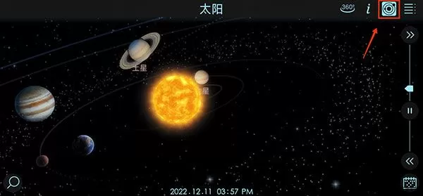 4、通过触按太阳系仪图标可以在星体的放大试图和原比例太阳系模型之间切换;